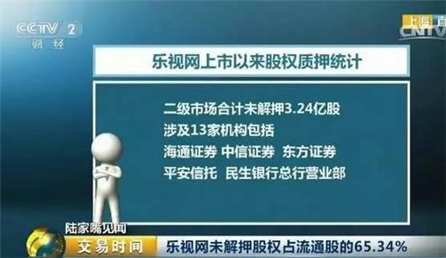 除此之外,涉及樂視網(wǎng)二級市場股權質押的機構,合計未解質押數(shù)量一共3.24億股,包括11家券商,分別是海通證券、中信證券、東方證券等;1家信托,即平安信托,還有1家銀行,民生銀行總行營業(yè)部。