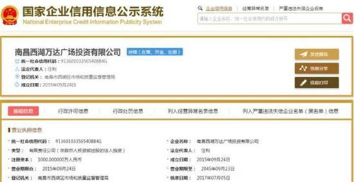 據(jù)萬達集團信息,今年6月23日,南昌西湖萬達廣場開業(yè)。隨后,7月5日,該廣場的經營范圍、投資人、法定代表人就出現(xiàn)變動。