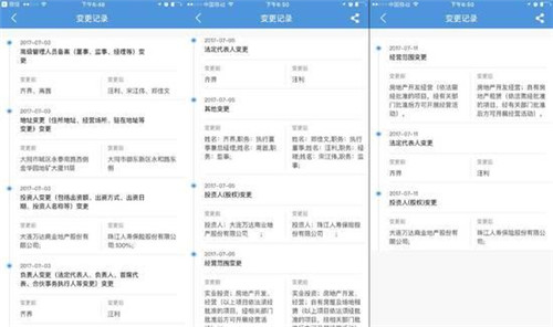 工商信息顯示,大同萬達房地產開發(fā)有限公司、南昌西湖萬達廣場投資有限公司和崇州萬達廣場置業(yè)有限公司依次于2017年7月3日、7月5日和7月11日發(fā)生了信息變更,單一股東由“大連萬達商業(yè)地產股份有限公司”變更為“珠江人壽保險股份有限公司”,法人均由“齊界”變更為“汪利”,董監(jiān)高人員也全面“換血”。