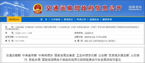 此外,新出臺的國家共享單車管理辦法,也意味著默許發(fā)展的政策紅利期正在成為過去時。8月2日,經(jīng)國務(wù)院同意,交通運(yùn)輸部、中央宣傳部、中央網(wǎng)信辦、國家發(fā)展改革委、工業(yè)和信息化部、公安部、住房城鄉(xiāng)建設(shè)部、人民銀行、質(zhì)檢總局、國家旅游局10部門聯(lián)合出臺了《關(guān)于鼓勵和規(guī)范互聯(lián)網(wǎng)租賃自行車發(fā)展的指導(dǎo)意見》。