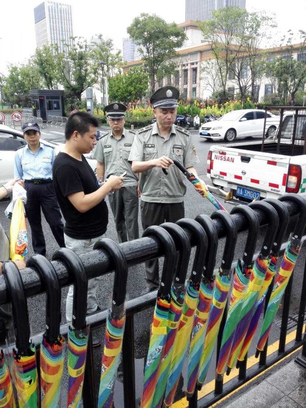 ?。ㄔ瓨?biāo)題:共享雨傘現(xiàn)身杭城 一天就遭城管“下架”天水執(zhí)法中隊:投放存在占用公共設(shè)施的情況)