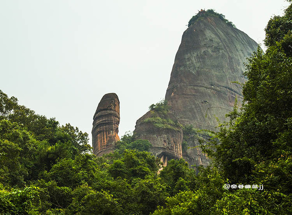 從山腳下乘索道上丹霞山主山之巔—寶珠峰,霧突突的天,在騰空而上的索道上縱目遙望置身于崇山峻嶺之中,不一會兒就到達寶珠峰頂,走到東部觀景臺(韶音亭)遠眺,群峰疊翠,連綿起伏,“無限風(fēng)光在險峰”的詩情畫意,得到淋漓盡致的體現(xiàn),讓人感受到世界名山的神奇魅力。