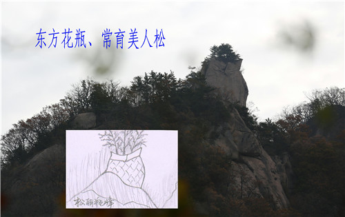 不過啊,不是所有的花瓶都空有其表,經(jīng)不起誘惑,比如西泰山有東方花瓶之稱的常育美人松。她以挺拔俊美的姿態(tài)屹立在山峰上幾百年,不受風云變幻的影響,不懼風霜雨雪的侵襲。她不但有俊美的外表還有堅忍不拔的精神。此“花瓶”非彼“花瓶”,“東方花瓶”的美譽就此可得一見。