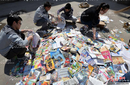 日前,河北省邯鄲市“掃黃打非”領(lǐng)導(dǎo)小組辦公室組織開展“2016年邯鄲市侵權(quán)盜版及非法出版物集中銷毀”活動(dòng)。圖為工作人員現(xiàn)場銷毀侵權(quán)盜版及非法出版物。郝群英攝/光明圖片
