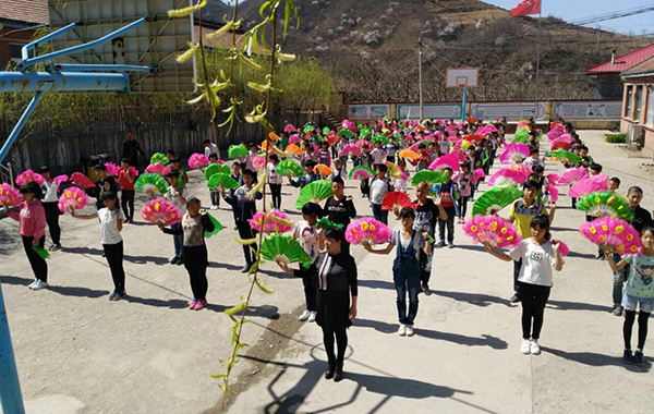 在村小工作了一段時間后, 趙銀鳳發(fā)現(xiàn)了一個問題:一個孩子的成長離不開家庭教育,學(xué)校百分之五十的學(xué)生都是留守兒童,整個村莊有很多留守婦女、空巢老人,這些家長的業(yè)余生活就是在聊天、打麻將中度過, 卻沒有時間關(guān)注孩子成長。于是她有了一個大膽的想法:把家長、村民也納入教育對象,利用寒暑假、休息日調(diào)動家長們的積極性。于是她幫助村民成立老年協(xié)會、婦女學(xué)校、家長學(xué)校、秧歌隊等組織,組織孩子們、家長與村民節(jié)目表演等活動,推動學(xué)習(xí)型家庭、學(xué)習(xí)型組織、學(xué)習(xí)型社區(qū)的建立,使學(xué)校成為整個村莊的文化中心;家、校、村三者結(jié)合,把村民帶到課堂,把課堂帶進(jìn)村莊,不僅提升了學(xué)生的能力和品質(zhì),提高了村民的生產(chǎn)生活技能,豐富了村民的文化生活,改變了村里白喜事大操大辦等陋習(xí)。