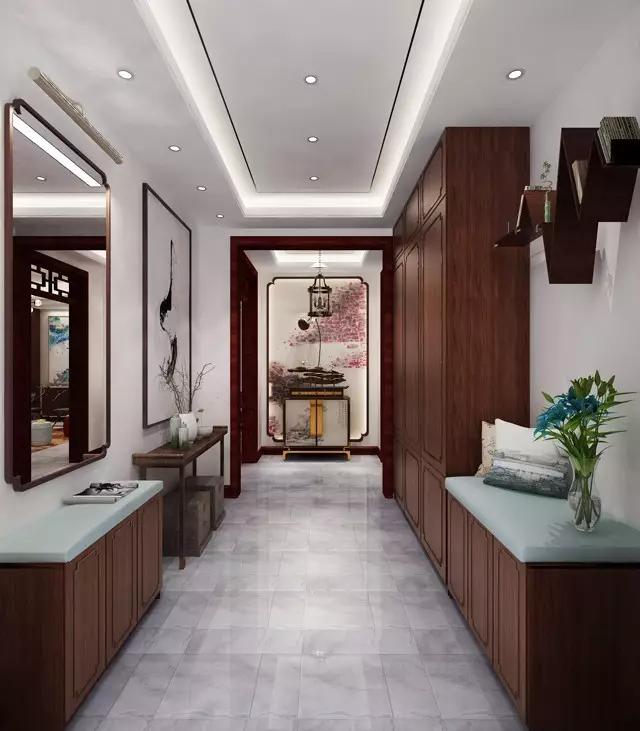 婉約綺麗,端秀莊重,中式畫卷總是以別樣風采,帶給人玩味無窮,流連忘返的體驗,惟妙惟肖的勾勒,對于景物的細膩刻畫,富有層次感的景深處理,都讓人身臨其境般體驗此時此刻的一份美好。狹長的門廳恍如步入美好畫境的起始,連接了觀者與畫境。