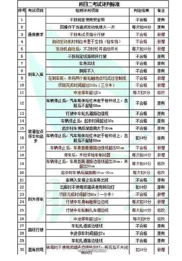 新標(biāo)準(zhǔn)更加突出了安全文明意識的考核,并且考試內(nèi)容更加貼近實際道路交通環(huán)境,場地駕駛考試注重實用性,比如對科目二倒車入庫、坡起、側(cè)方停車等項目做了細(xì)化和調(diào)整,培養(yǎng)考生良好的駕駛習(xí)慣。