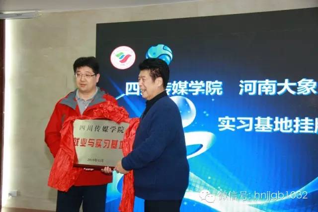 四川傳媒學(xué)院副院長王雷、河南大象融媒體集團(tuán)副總裁李強(qiáng)為“四川傳媒學(xué)院·大象融媒就業(yè)實習(xí)基地”掛牌。