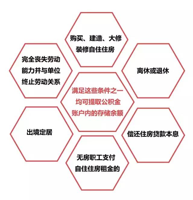 職工有以上六種情形之一的,可以提取職工住房公積金賬戶內(nèi)的存儲余額。其中,因離休、退休;完全喪失勞動能力,并與單位終止勞動關(guān)系;出境定居,提取職工住房公積金的,應(yīng)當同時注銷職工住房公積金賬戶。