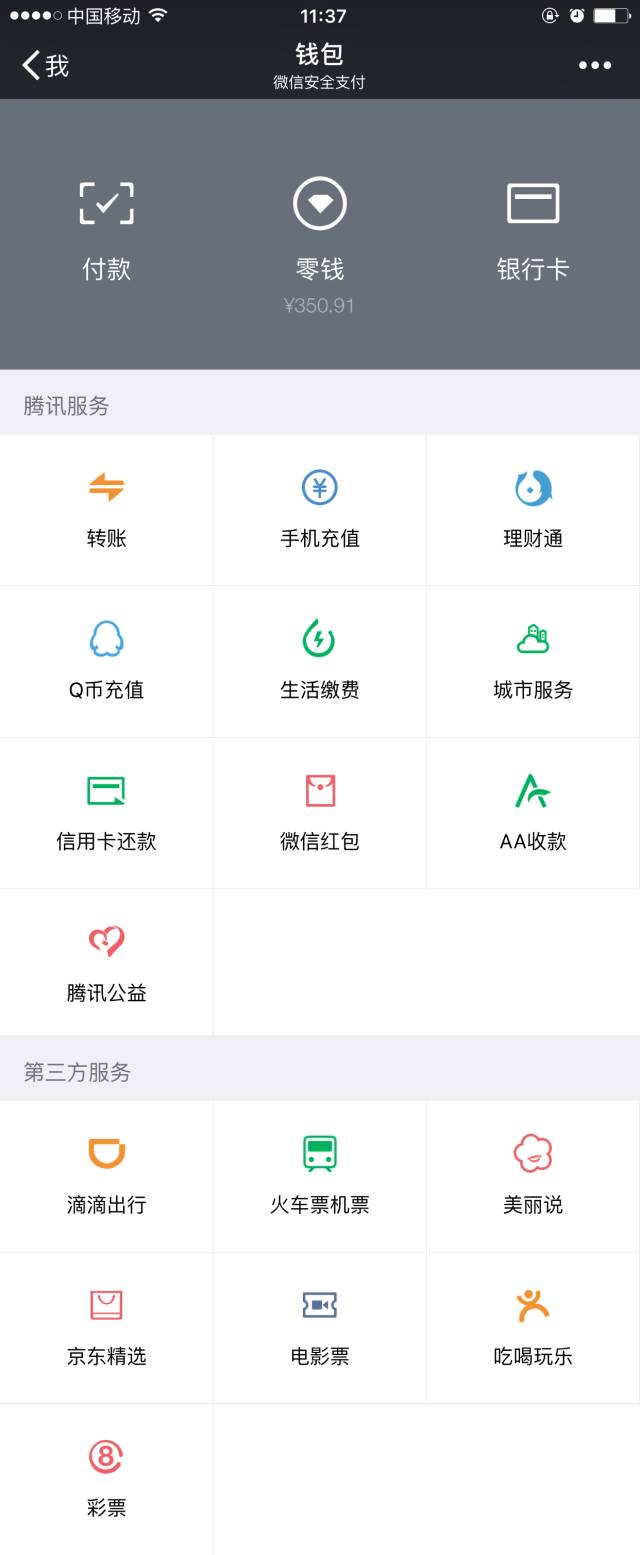 可用地盤:京東、滴滴出行、大眾點評、美團、餓了么、攜程等……更多用法早已經(jīng)藏在微信“錢包”里了