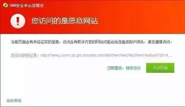 也有人根據截圖上的鏈接在電腦上打開,360提示為欺詐網站: