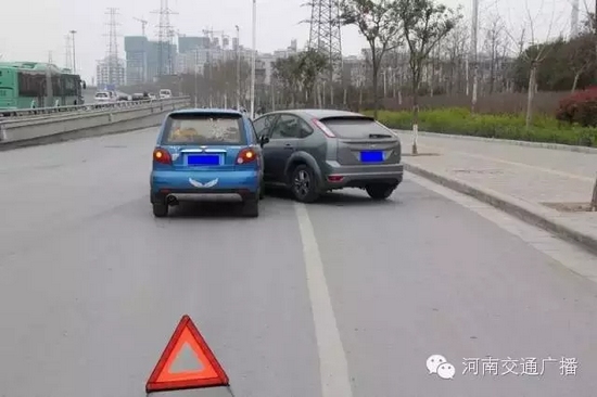 3、為避免發(fā)生次生交通事故,以及在處理事故時(shí)被當(dāng)成違法停車誤抓拍,請?jiān)谑鹿侍幚硗戤呏埃涕_啟雙閃燈,放置三角警示牌;