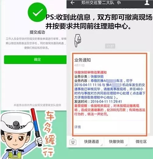 一起簡單的輕微交通事故,如不及時(shí)撤離現(xiàn)場,便極易引起交通擁堵。今后,這一現(xiàn)象將在我市得到有效解決,鄭州市交警支隊(duì)科研所和河南省保險(xiǎn)行業(yè)協(xié)會(huì)聯(lián)合研發(fā)的交通事故快撤快賠功能在鄭州交巡警二大隊(duì)微信公共平臺上線并試運(yùn)行。