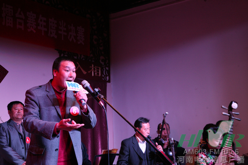 今天(3月19日)上午,鄭州德樂相聲社400多平米的演出大廳座無虛席,來自全省各地的21名戲迷選手匯聚一堂,2012年“中原戲迷擂臺賽”下半年度半決賽正式開賽。經過激烈角逐,來自鄭州的李宗書、王彩霞、劉梁、張華,新鄉(xiāng)的楊國朋、王愛梅,新密的馬少峰,周口的吳瑞霞,長垣的劉艷東,鶴壁的王少紅晉級十強,直通總決賽。