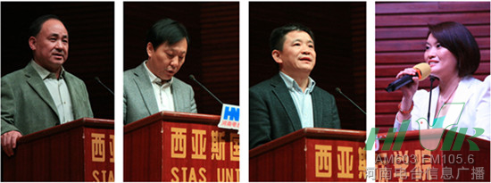 左起:鄭州大學(xué)西亞斯國際學(xué)院黨委書記費(fèi)鶴祥 河南人民廣播電臺(tái)副臺(tái)長(zhǎng)李海軍