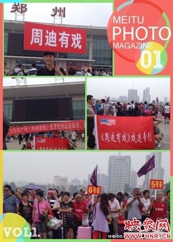 2014年8月17日,《周迪有戲》戲迷專(zhuān)列將滿(mǎn)載600名我省戲迷一同前往四川、重慶,開(kāi)始7天的文化之旅,出發(fā)儀式于下午1:30分在鄭州火車(chē)站西廣場(chǎng)舉行。