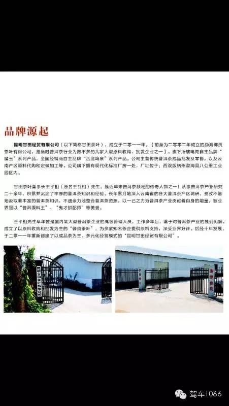 甘田茶葉成立于二零一一年(前身為二零零二年成立的勐海御貢茶葉有限公司,是當(dāng)時(shí)普洱茶行業(yè)為數(shù)不多的幾家大型原料收購(gòu),批發(fā)企業(yè)之一)。旗下所轄電商自主品牌“魔玉”系列產(chǎn)品,全國(guó)經(jīng)銷(xiāo)商自主品牌“舌底鳴泉”系列產(chǎn)品,公司主營(yíng)普洱茶成品批發(fā)及零售,以及云南產(chǎn)區(qū)原料代購(gòu)和定做加工等。