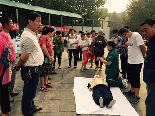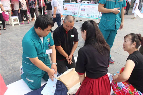 醫(yī)生們一邊操作,一邊講解,市民們有不明白的,還可以現(xiàn)場(chǎng)提問。幾乎每一位認(rèn)真學(xué)習(xí)的市民都想一試身手,醫(yī)生則在一旁一對(duì)一指導(dǎo)。