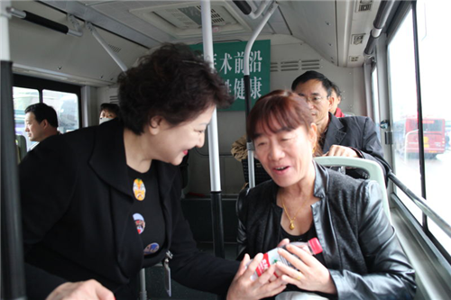 省醫(yī)院長(zhǎng)﹑公交總公司副總經(jīng)理上車體驗(yàn),詢問(wèn)乘客的感受