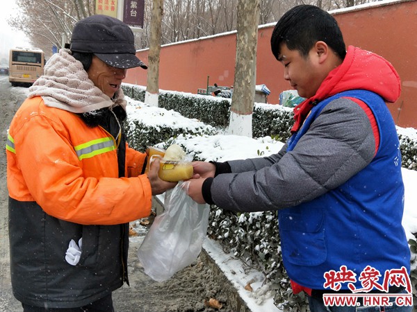 為了除雪工作,你們辛苦啦,快來喝一杯熱粥吧!”一杯杯熱氣騰騰的粥,一份份充滿愛心的加餐,讓環(huán)衛(wèi)工人在寒冷的冬日里感受到了陽光般的溫暖。