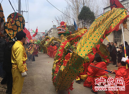新鄭市觀音寺鎮(zhèn)太清村,新鄭、長葛、禹州的三縣交界處。3月3日下午15時許,太清村的街上人山人海,水泄不通。各條街道上鑼鼓喧天,熱鬧非凡。多個舞獅團(tuán)隊開始在高高樹起的架子上表演,地面上各種各樣的民間表演爭奇斗艷。
