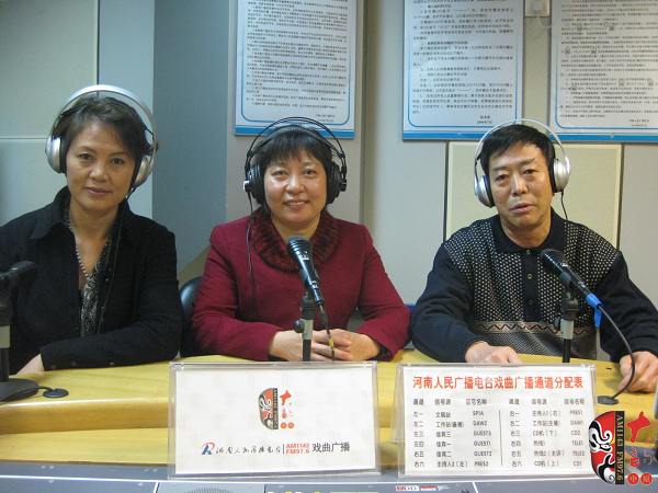 ?。ㄗ笃穑鸿鬈幩囆g(shù)團(tuán)主任聶衛(wèi)國、副團(tuán)長(zhǎng)兼主要演員李風(fēng)莉、團(tuán)長(zhǎng)李春友、主任魏桂愛和著名戲曲節(jié)目主持人戲曲廣播“當(dāng)家小生”月陽在直播間