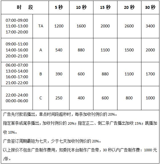 標(biāo)準(zhǔn)廣告刊例價(jià)