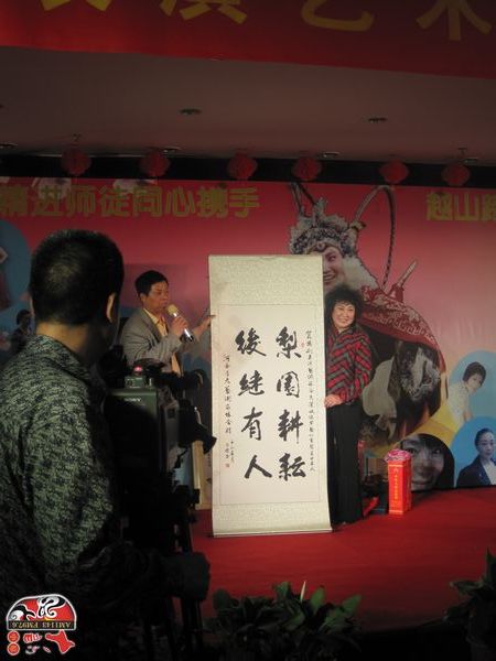 據(jù)了解,這是自1994年第一次收徒起,谷秀榮18年來最隆重的一次收徒儀式,66歲的她在收徒現(xiàn)場激動(dòng)不已,她說:“我今天不是在收徒,而是在交志同道合的好友?!彼硎編熗絺円獢y手為熱愛戲曲的人放聲歌唱。