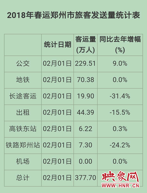 2月2日,映象網(wǎng)記者從鄭州市交通委獲悉,春運(yùn)第一天鄭州公交、高鐵客運(yùn)同比增長(zhǎng),客運(yùn)、出租車呈下降趨勢(shì)。