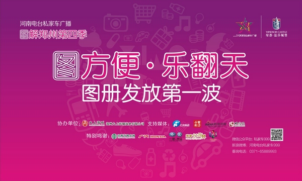 河南電臺(tái)私家車(chē)廣播2013大型公益系列活動(dòng)——“圖解鄭州”第四季“圖方便·樂(lè)翻天”,圖冊(cè)發(fā)放第一波將于2013年9月1日在鄭州市中州大道晨旭路交匯處廣汽本田北環(huán)店和航海東路與商英街交匯處的裕華奧捷一汽車(chē)大眾免費(fèi)發(fā)放。