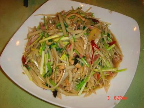 細(xì)香碟兒上灶,一道名字聽(tīng)起來(lái)特別文藝的美食。王樹(shù)誠(chéng)跟記者介紹說(shuō):“他是用那種香菜根,加上筍尖根、再加上蘆筍根,還有豬耳朵的耳根,總共是有5到6種跟炒在一塊,特別爽口,特別下酒。招待外來(lái)朋友的話(huà),點(diǎn)上那個(gè)菜也是一個(gè)就是比較好的一種享受?!?/p>