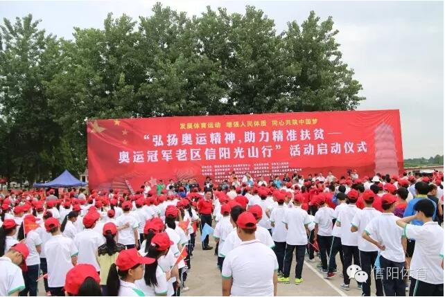 6月20日上午,由國(guó)家體育總局人力資源開發(fā)中心、河南省體育局和信陽市人民政府主辦,信陽市體育局、信陽市文明辦、信陽市扶貧辦和光山縣人民政府承辦的“弘揚(yáng)奧運(yùn)精神,助力精準(zhǔn)扶貧——奧運(yùn)冠軍老區(qū)信陽光山行”活動(dòng)啟動(dòng)儀式在光山文殊一中隆重舉行。