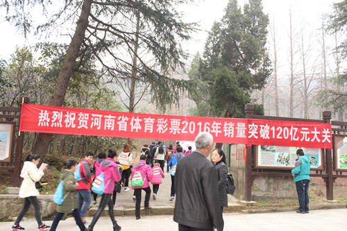 2017年1月1日元旦佳節(jié),“中國體育彩票”全國新年登高健身大會(華中主會場)暨信陽新年登雞公山健身大會“精彩開幕,來自社會各界的3000余名群眾、體彩代表及健身愛好者參加活動(dòng)。新年登高意義深遠(yuǎn),在參與全民健身鍛煉體魄的同時(shí),還能帶來美好的希望。在協(xié)辦單位河南省體育彩票管理中心的指示下,體彩信陽分中心組織了80名網(wǎng)點(diǎn)業(yè)主組成代表隊(duì)參賽,并在開幕式現(xiàn)場舉行了多種形式的宣傳活動(dòng)。