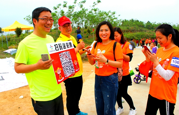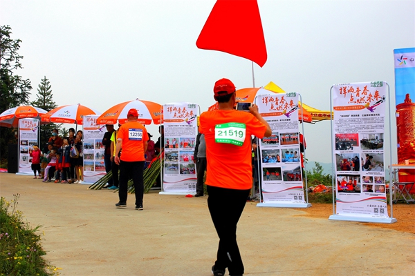 河南體彩管理中心信陽分中心在賽道的4公里處設(shè)置了“河南體彩黨支部第十四小組黨員服務(wù)站”,布置了休息區(qū)域,免費提供溫開水為大家取用。還以概率游戲的大樂透玩法為主要宣傳內(nèi)容,張貼了宣傳品,現(xiàn)場為大家介紹大樂透的玩法知識。崎嶇的山路上,沿路擺放了體彩頂呱刮的銷售區(qū),由網(wǎng)點業(yè)主自發(fā)開展“掃碼加好友”送即開彩票的線上拉新活動,另外,信陽分中心還為群眾登山愛好者免費提供了簡易的登山杖,確保大家的登山安全。