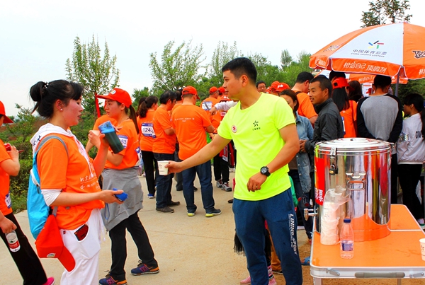 分中心黨員同志為參賽者提供免費飲水服務(wù)