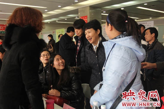 河南省婦聯(lián)副主席庫鳳霞與現(xiàn)場導師以及求職者交流