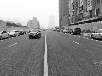 昨日上午11點(diǎn)30分,記者驅(qū)車從東明路緯四路口右轉(zhuǎn)向東進(jìn)入緯四路(東明路未來(lái)路段)(如右圖),只見(jiàn)嶄新的瀝青路面已完全鋪好,道路為雙向四車道,東西方向已經(jīng)有很多機(jī)動(dòng)車開(kāi)始從這里“嘗鮮”。