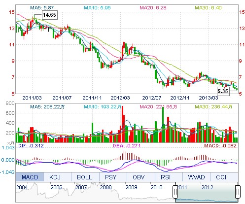 蘇寧云商2011年至今A股走勢(shì)周線圖