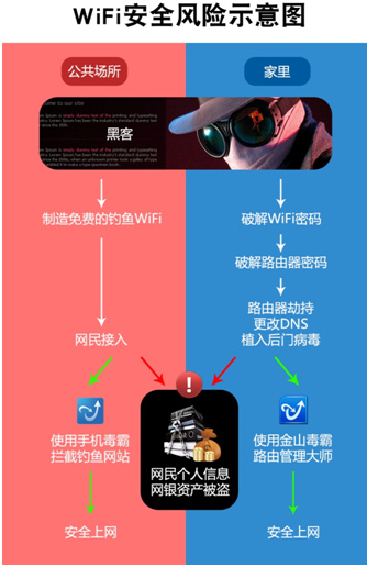 昨日,央視《消費(fèi)主張》報(bào)道了人們?nèi)粘J褂玫臒o(wú)線(xiàn)網(wǎng)絡(luò)存在巨大的安全隱患。在節(jié)目中,央視聯(lián)合金山毒霸安全工程師在多個(gè)場(chǎng)景實(shí)際測(cè)驗(yàn)顯示,火車(chē)站、咖啡館等公共場(chǎng)所的一些免費(fèi)WIFI熱點(diǎn)有可能就是釣魚(yú)陷阱,而家里的路由器也可能被惡意攻擊者輕松攻破。網(wǎng)民在毫不知情的情況下,就可能面臨個(gè)人敏感信息遭盜取,上網(wǎng)如同“裸奔”,訪(fǎng)問(wèn)釣魚(yú)網(wǎng)站,會(huì)直接造成經(jīng)濟(jì)損失。
