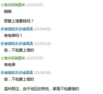 據(jù)小編調(diào)查發(fā)現(xiàn)(如下圖),部分商家表示免費送貨,但卻不送上樓,上樓需要額外支付搬運(yùn)費;也有部分商家是按樓層高低收費,如:三樓以下不收“上樓費”,三樓以上,收費按樓層高度遞增。這個問題消費者一定要與客服交流清楚,否則商品運(yùn)來了,還要掏錢才能進(jìn)屋,或者要自己動手搬,麻煩就大了。