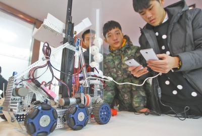 咱鄭州的學(xué)生“玩”機(jī)器人很有一手!11月23日~24日,2015世界青少年機(jī)器人邀請賽在北京舉行,鄭州二中8名高中生組成的隊(duì)伍“殺入”四強(qiáng),國內(nèi)排名第二,并榮獲最佳設(shè)計獎。昨日,記者見到了剛剛比賽歸來的學(xué)生們和他們設(shè)計的機(jī)器人。