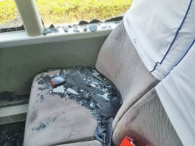 大巴車被開(kāi)走后,留下滿地玻璃碴。記者李康王亞鴿攝影