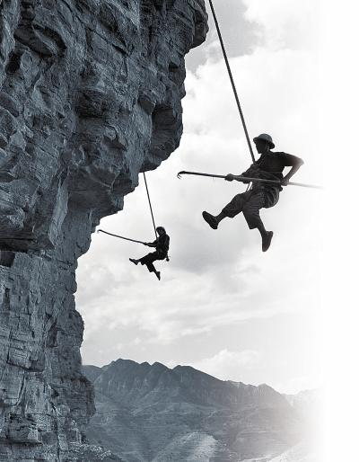 和楊貴第二次見面是在1960年2月,春節(jié)剛過,寒風凜冽刺骨,那時,魏德忠去林縣采訪山區(qū)建設情況,車行至山腳下,當聽到崖上開鑿打洞的聲音時,循聲望去,只見一個個腰系繩索,懸掛在崖壁上的開鑿巖石的身影??吹蕉嗳苏谛藿ㄋ恼鸷硤雒妫貏e激動,“這不是當年的愚公移山嗎?”