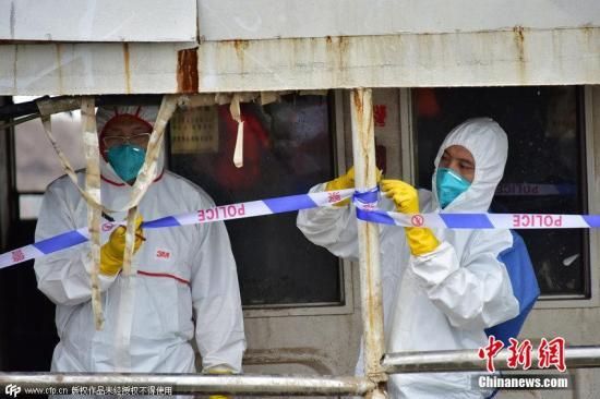 2015年6月8日,湖北荊州,工作人員對“東方之星”輪逐層逐艙進(jìn)行最后的排查清理。14時10分,驗收通過后長江公安警方拉上了警戒線,這標(biāo)志著“東方之星”輪現(xiàn)場排查清理工作全部完成。圖片來源:CFP視覺中國