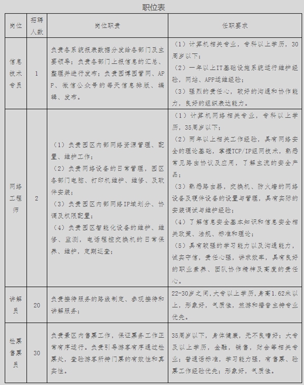 詳見附件《鄭州航空港園博園實(shí)業(yè)有限公司2017年公開招聘第二批工作人員職位表》。