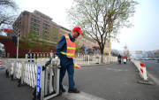 2014年4月2日,北京長(zhǎng)安街上多個(gè)路口增設(shè)了封機(jī)動(dòng)車護(hù)欄,紅燈時(shí)非機(jī)動(dòng)車護(hù)欄拉起,防止非機(jī)動(dòng)車闖紅燈。圖為綠燈亮起,護(hù)欄打開正常通行。
