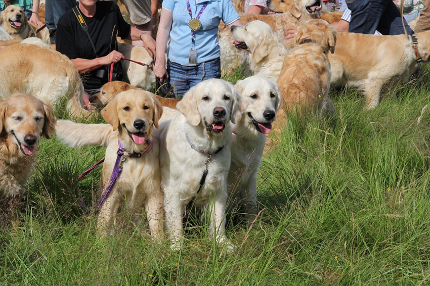 金毛犬,又名金毛尋回犬(Golden Retriever),其友好溫順的個(gè)性深得人們喜愛,在全球累積了不少“金毛粉絲”。據(jù)英國(guó)《每日郵報(bào)》8月13日?qǐng)?bào)道,英國(guó)北部蘇格蘭的金毛俱樂部在上個(gè)月舉辦了第三場(chǎng)世界級(jí)的金毛犬聚會(huì),邀請(qǐng)全世界的金毛飼養(yǎng)者帶著他們可愛的寵物——金毛犬,前來(lái)共享這一歡樂的時(shí)刻。而最終參加這個(gè)聚會(huì)的,有222只金毛犬。