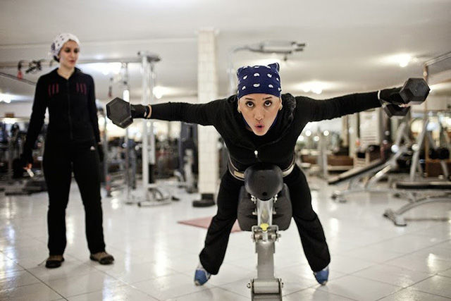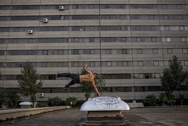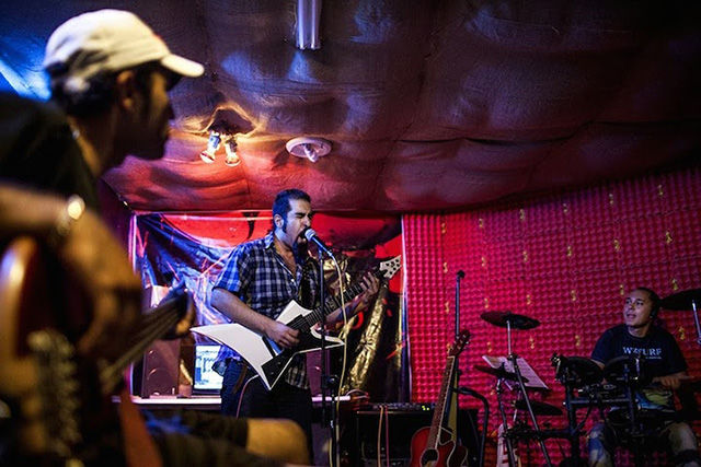 盡管照片中的人顯得很輕松,但對拍攝照片的Fatemi來說卻十分不易。這個攝影師花了數月才被允許進入女性健身房、發(fā)廊等。很多人不愿意被拍到臉,怕被認出來;很多人取消了預約,怕因此丟了工作。雖然存在著種種困難,F(xiàn)atemi還是取得了驚人的成果,為伊朗和外界拍攝了包羅萬象的精美照片。圖為私人搖滾音樂會。搖滾音樂在這里是被禁止的,所以這類表演一般都很隱秘的。