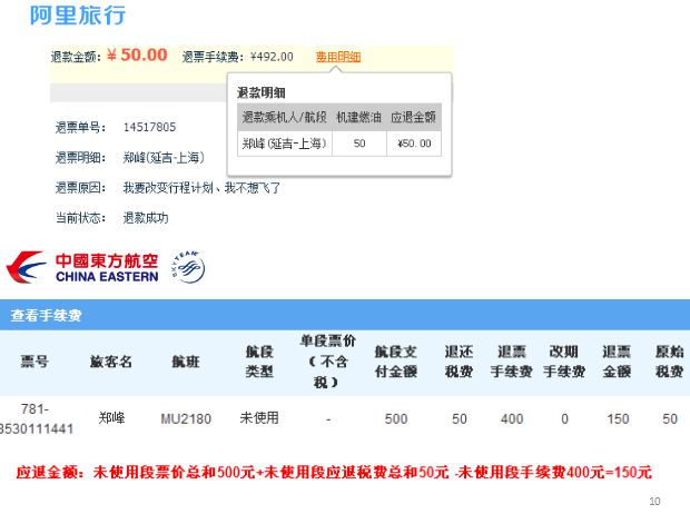 消保委質疑:在購票前消費者并不知道退改簽規(guī)則,阿里拿著消費者的信息在東航退票,東航把錢退給代理商,代理商從中拿了50塊退給了消費者,阿里“吃掉”了部分退款手續(xù)費?