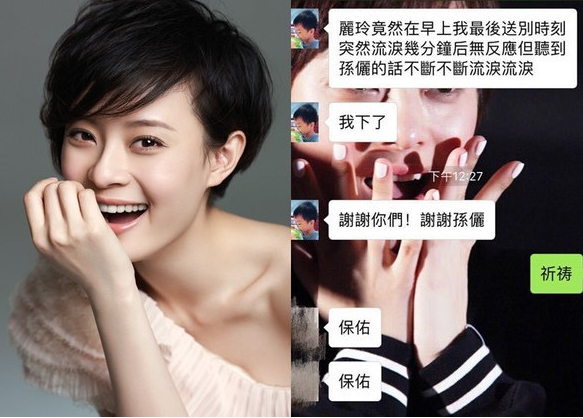 據(jù)臺灣媒體《東森新聞云》3月13日報(bào)道,大陸女星孫儷因?yàn)檠莩觥逗髮m甄嬛傳》、《羋月傳》等戲,紅透兩岸三地。最近有名叫“麗玲”的粉絲腦死昏迷36小時(shí);沒想到孫儷得知,本人竟錄音,聲聲喚“趕緊醒過來”;并答應(yīng)愛畫圖的她,等她醒來,“我就坐在你面前讓你畫?!睕]想到她聽完竟流淚,也醒過來了。